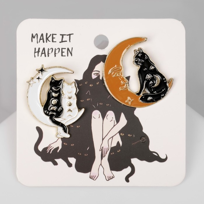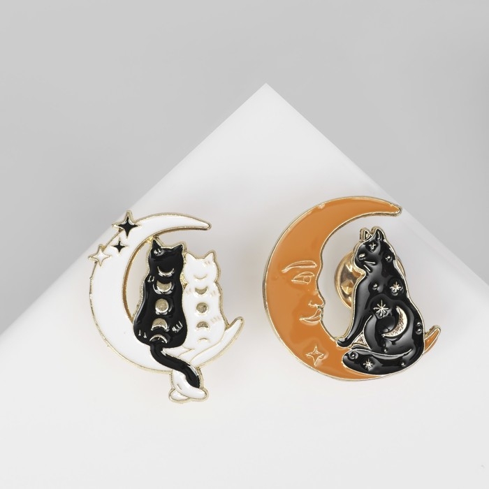 Набор значков (2 шт.) «Коты на Луне», цветной в золоте