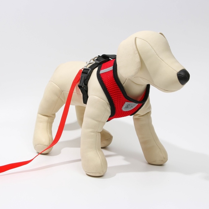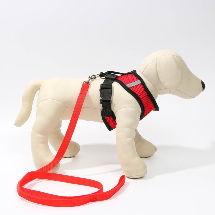 Шлейка дышащая с поводком и светоотражающей нашивкой, M, ОШ 33, ОГ 32-43, красная
