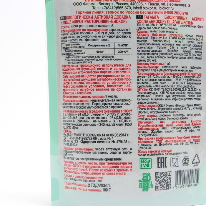 Шрот расторопши «Биокор» — эффективное средство для поддержания функций печени, желчевыводящих путей и желудочно-кишечного тракта.