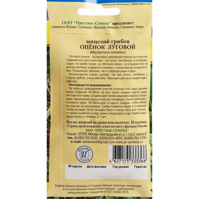 Семена Шампиньон "Бразильский", ц/п, на зерновом субстрате, 15 мл