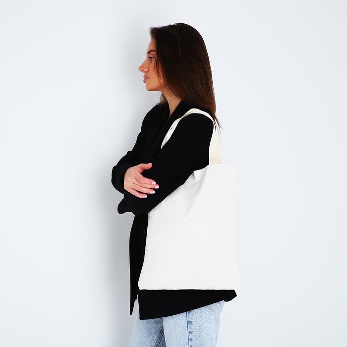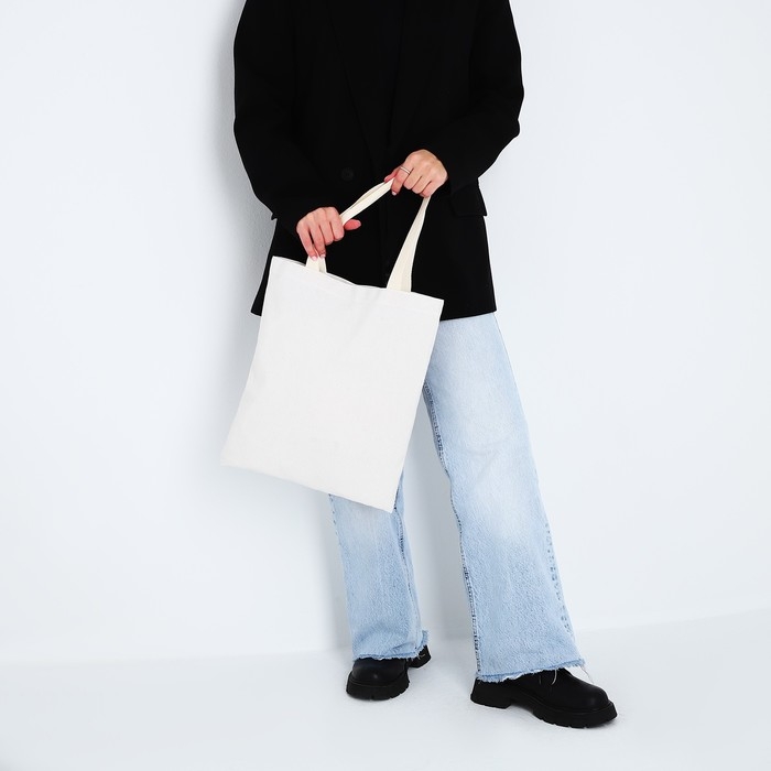 Шопер однотонный, 35 х 0.5 х 40 см, двунитка, без подклада, бежевый