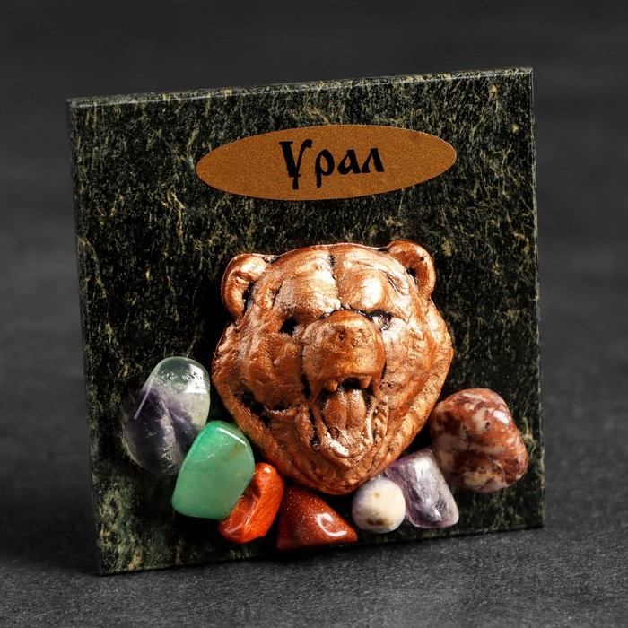 Магнит "Медведь. Урал", змеевик, гипс