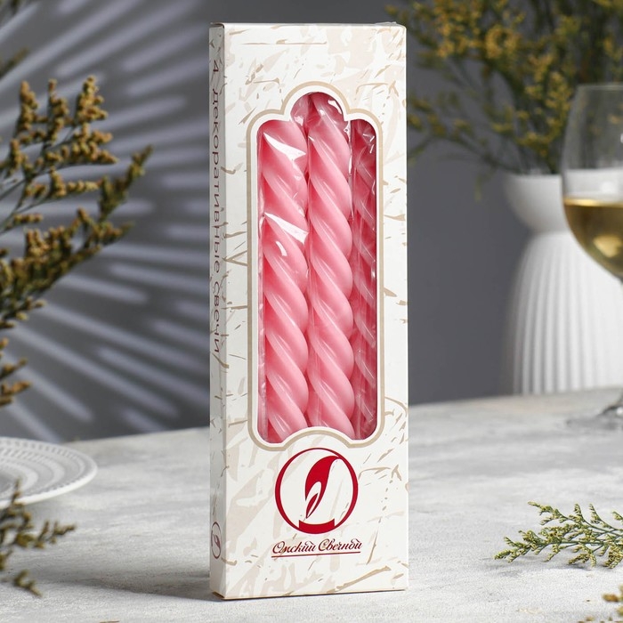Набор свечей витых, 2,3х 24,5 см, 5 ч, 50 г, 4 штуки, светло-розовый