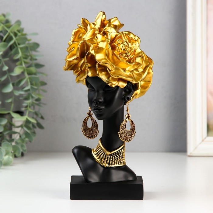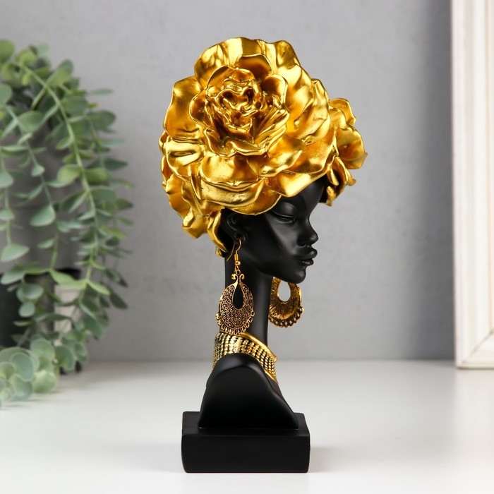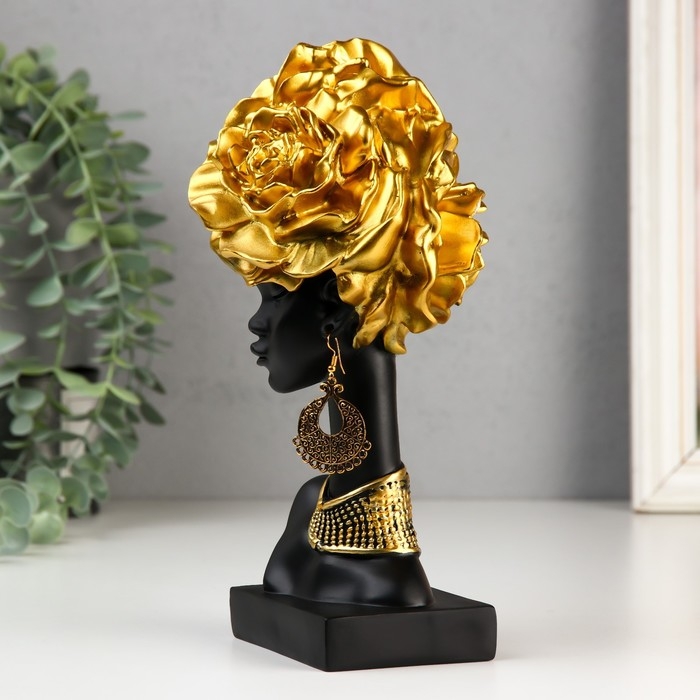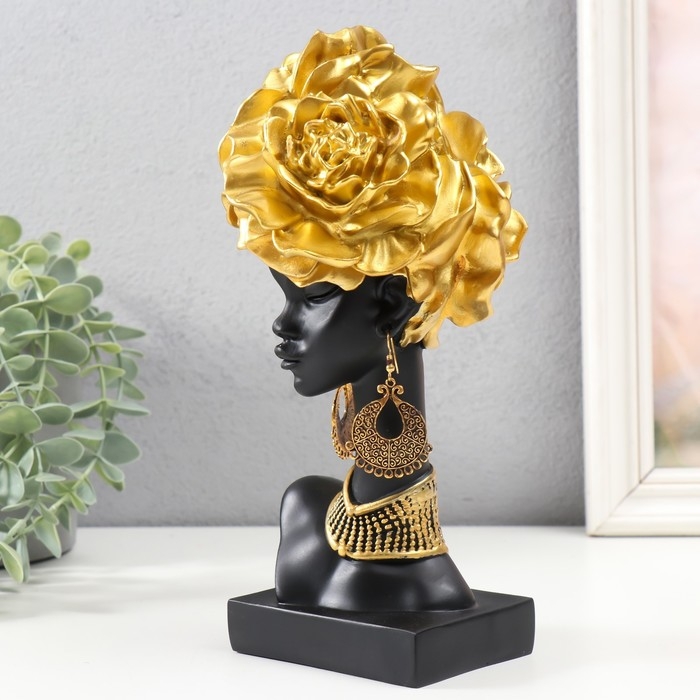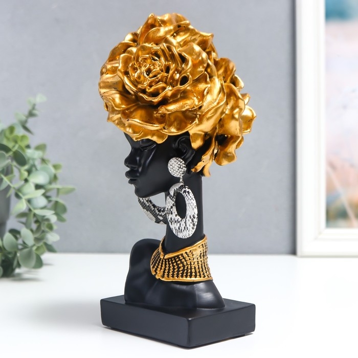 Сувенир полистоун "Африканка с золотыми розами в волосах, с ожерельем" чёрный 24х10х11 см