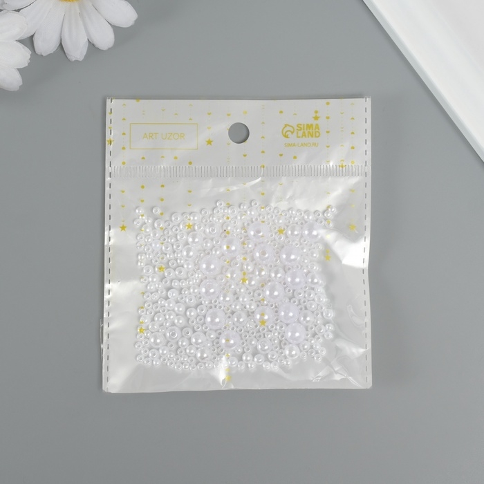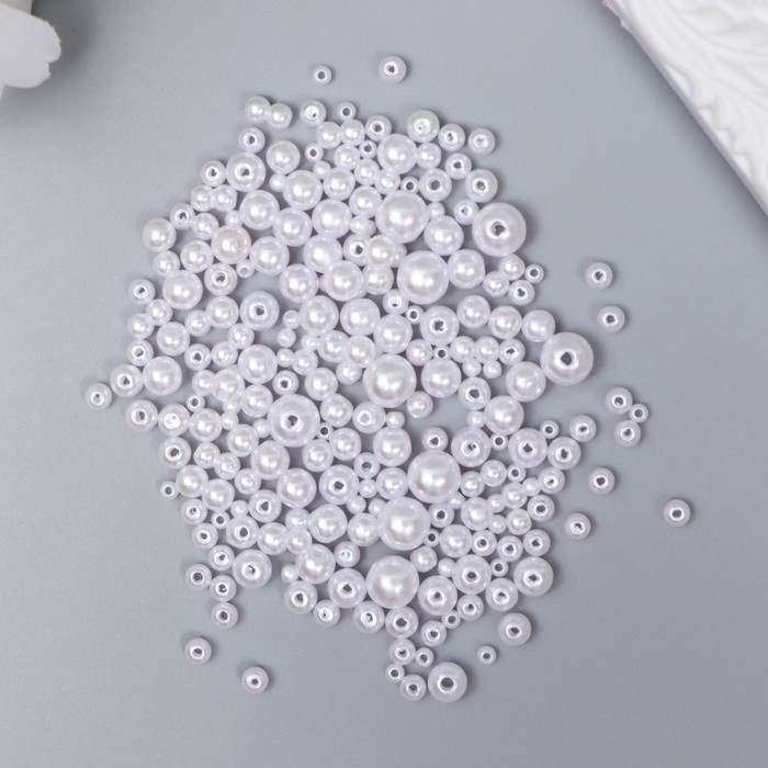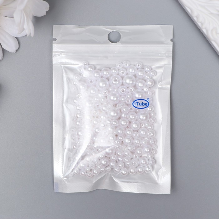Бусины для творчества пластик "Круглые. Белые" d=3-8 мм, набор 10 гр
