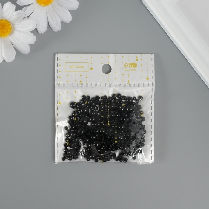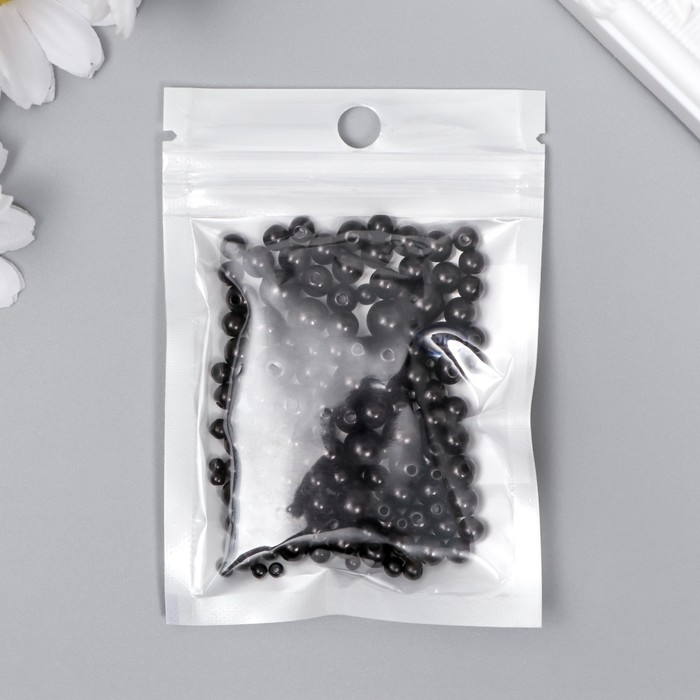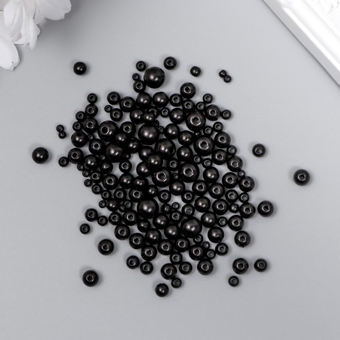 Бусины для творчества пластик "Круглые. Чёрный" d=3-8 мм, набор 10 гр
