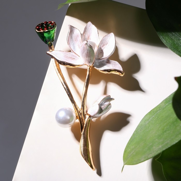 Брошь «Ветвь» с жемчужиной, цвет белый в золоте