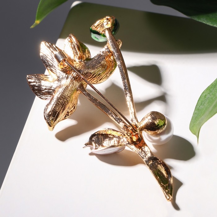 Брошь «Цветочная композиция», цвет бело-зелёный в золоте