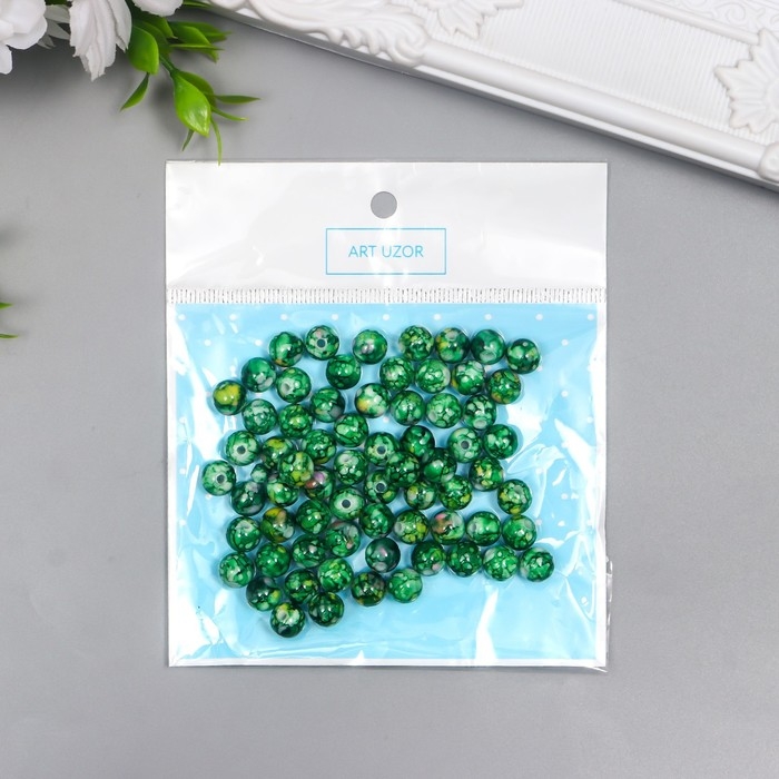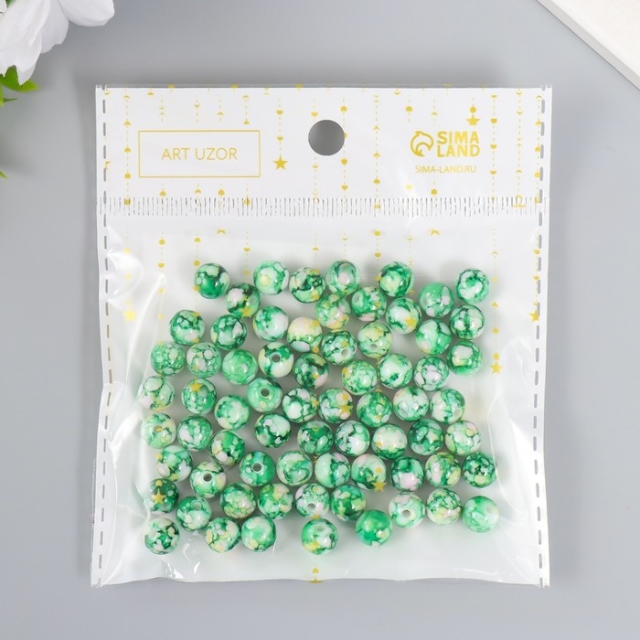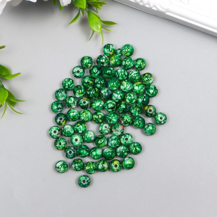 Бусины для творчества пластик "Мраморные. Малахит" d=0,8 см набор 20 гр