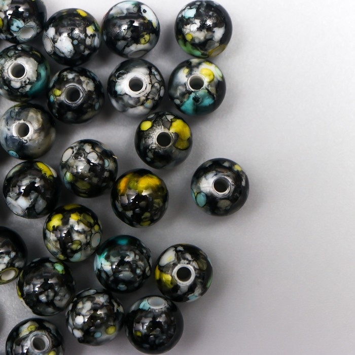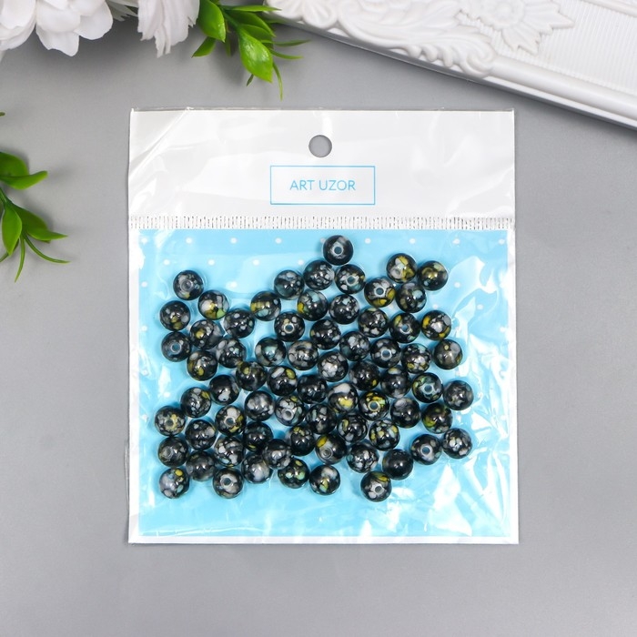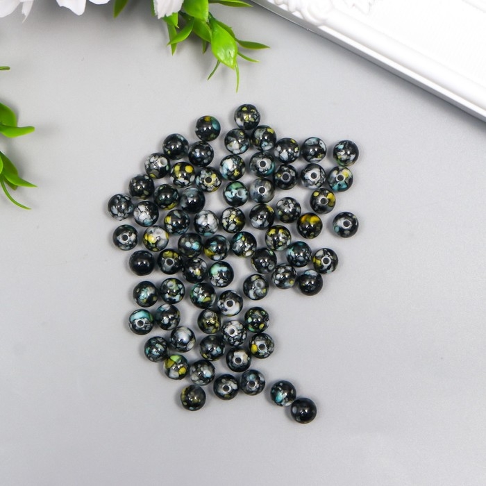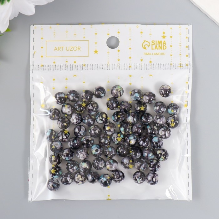Бусины для творчества пластик "Мраморные. Чёрный" d=0,8 см набор 20 гр