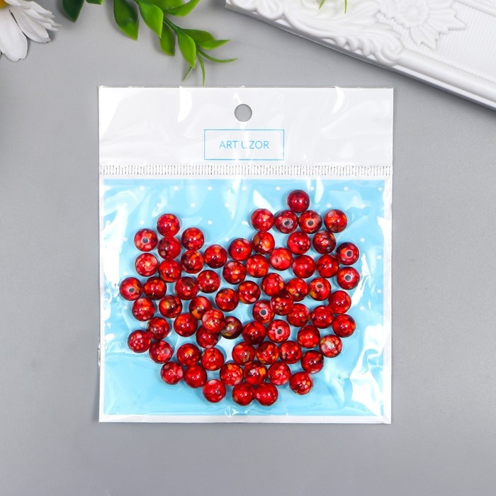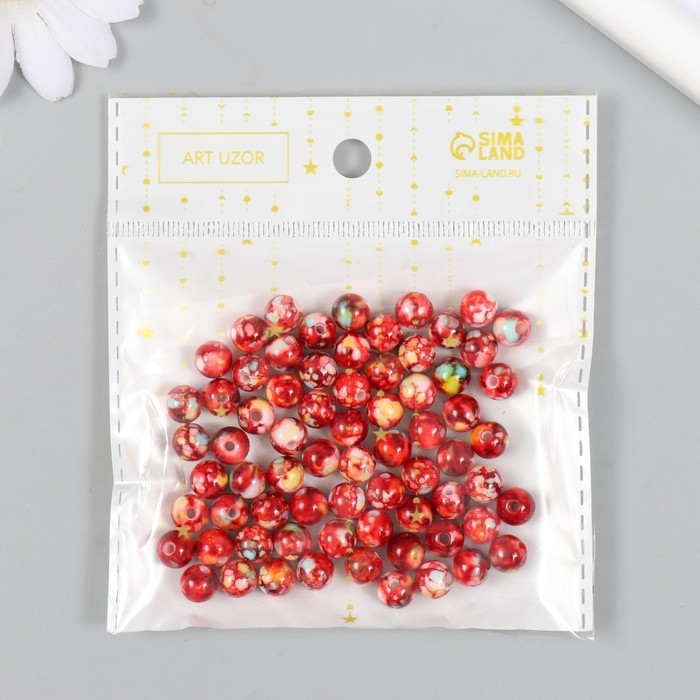 Бусины для творчества пластик "Мраморные. Терракот" d=0,8 см набор 20 гр
