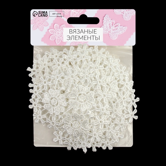 Вязаные элементы «Сердце из цветов», 8 × 8,5 см, 10 шт, цвет белый