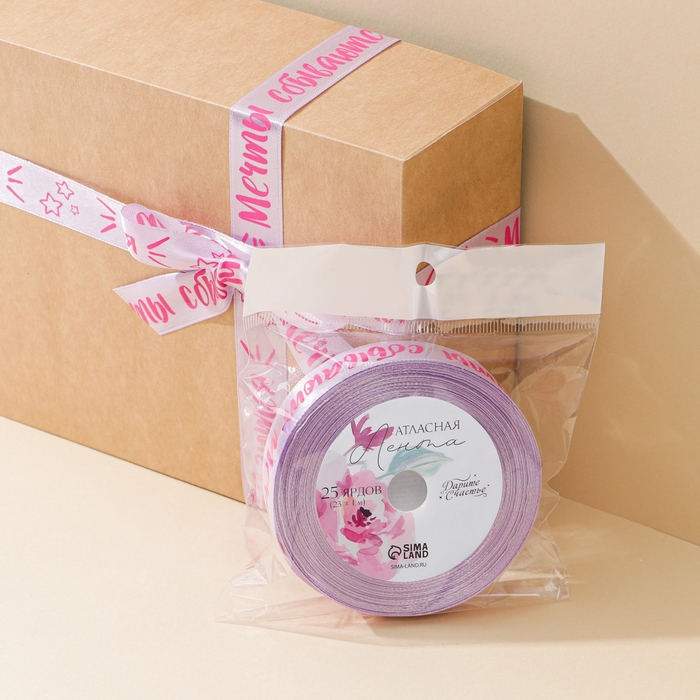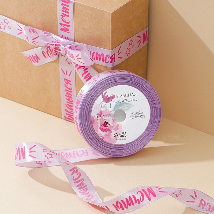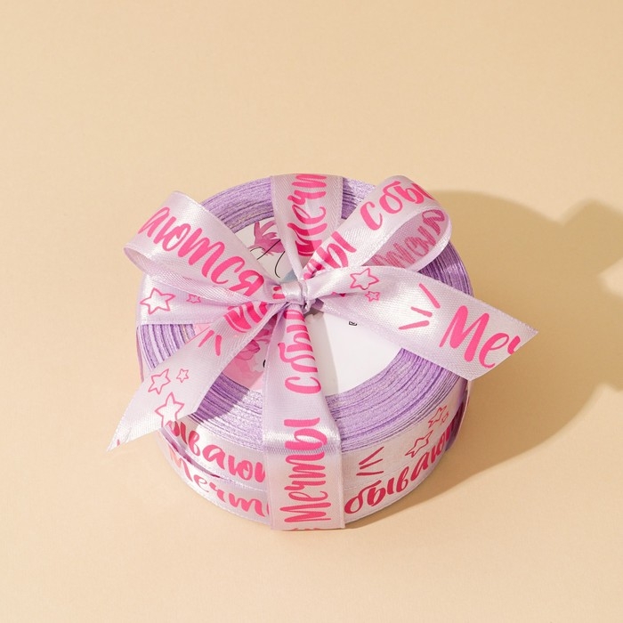 Лента атласная, подарочная упаковка, «Мечты сбываются», лаванда, 2 см х 22.5 м