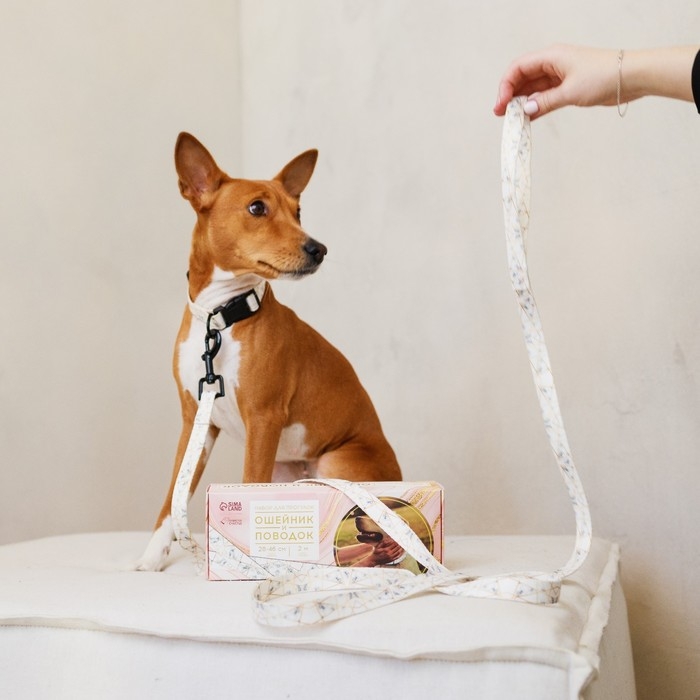 Набор для собак сделан из капрона и оснащён надёжной пластиковой застёжкой фастекс, что позволяет быстро надеть/снять ошейник. Устойчив к влажности и перепадам температуры. Ошейник практичен в применении, при загрязнении легко очищается. Поводок очень прочный, крепится к ошейнику металлическим карабином.