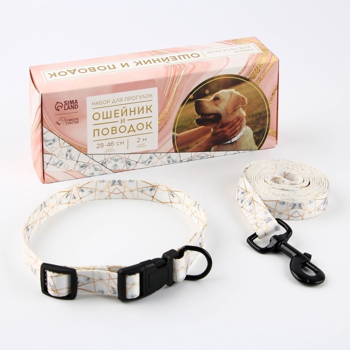 Набор «Мрамор», застёжка - фастекс, поводок 2 м и ошейник 28-46 см