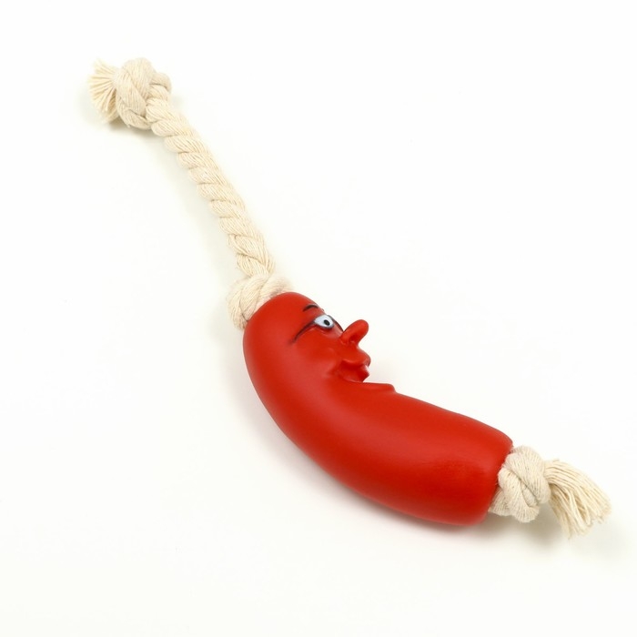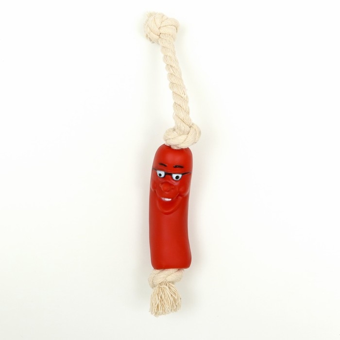Игрушка "Весёлая сосиска на верёвке" для собак, 14 см