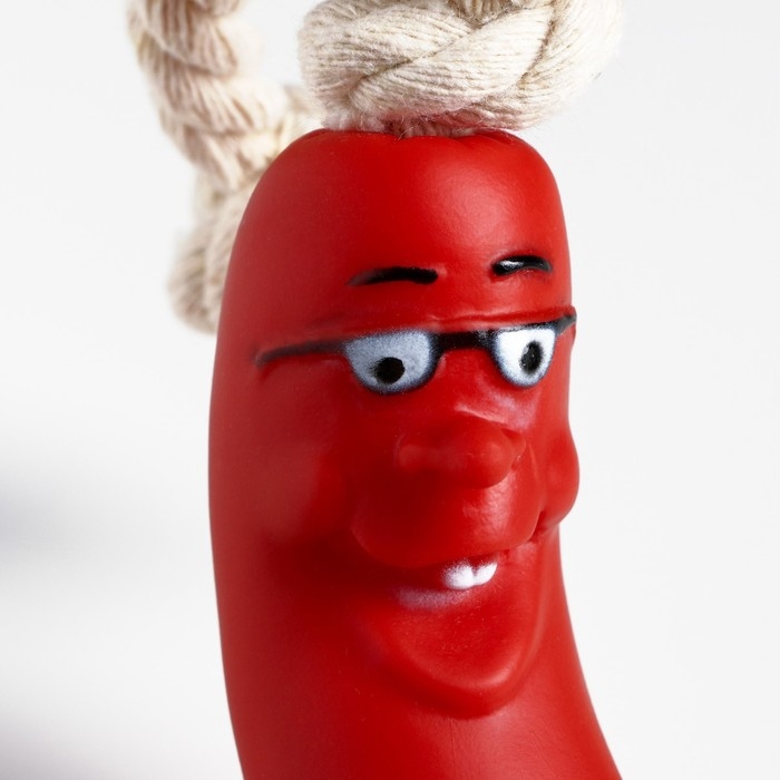 Игрушка "Сосиска в очках на верёвке" для собак, 14 см