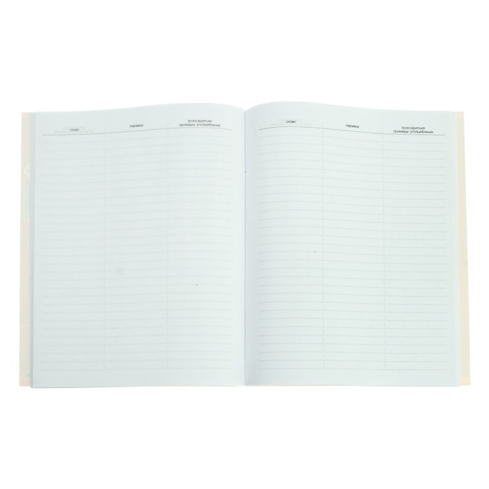 Тетрадь-словарик с обложкой из мелованного картона предназначена для записи и изучения иностранных слов. Каждая страница представлена в табличном виде для заполнения трех столбцов: слово, транскрипция, перевод. Внутренний блок: офсет 60 гр. Титульный лист с возможностью персонализации. Линовка - оригинальный блок в линию, со справочной информацией: сравнительной таблицей популярных в речевом обороте слов на разных языках.
