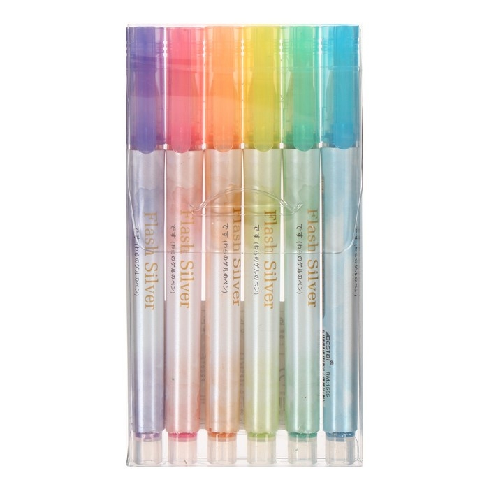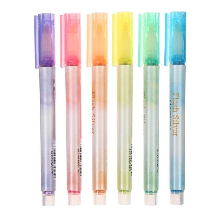 Набор маркеров текстовыделителей 6 цветов, с блестками