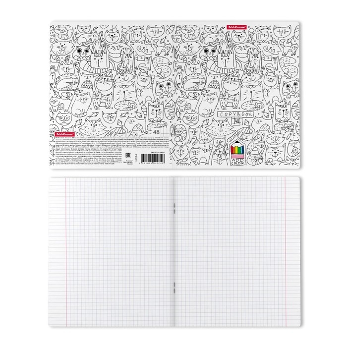 Тетрадь 48 листов в клетку, ErichKrause Add Color. Animals, обложка мелованный картон, блок офсет 100% белизна, МИКС (1 вид в спайке)