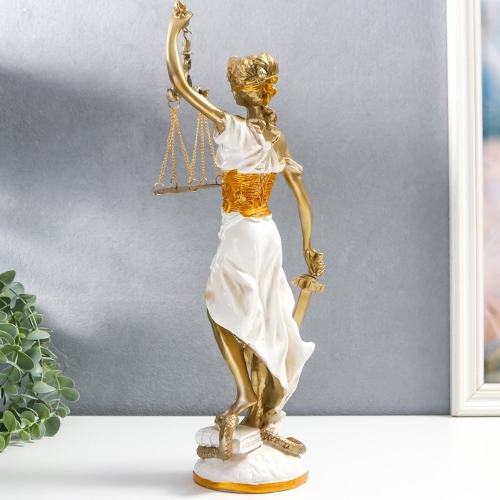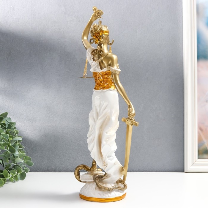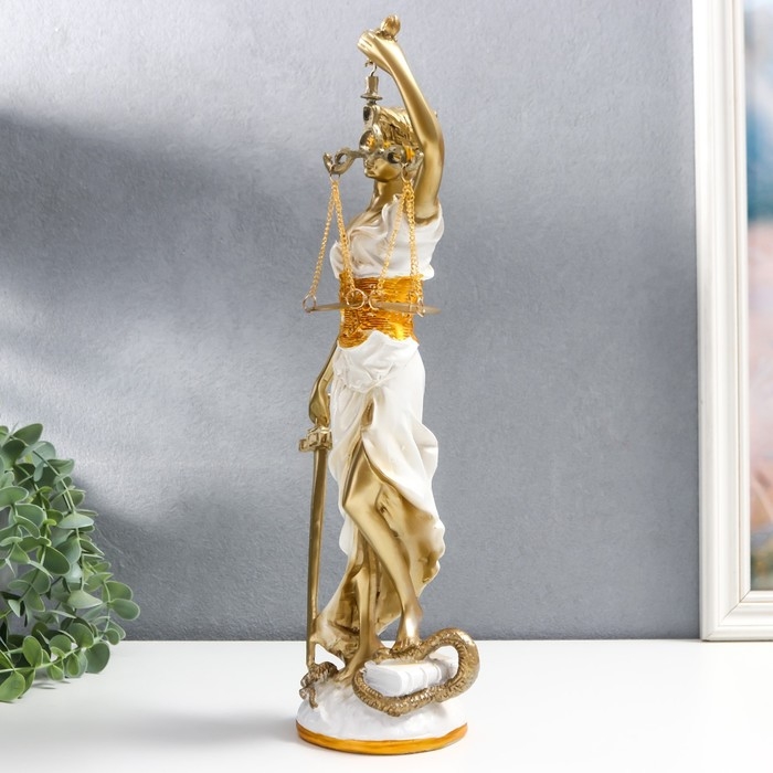 Сувенир полистоун "Богиня Фемида - Правосудие" белый с золотом 38х9х9 см