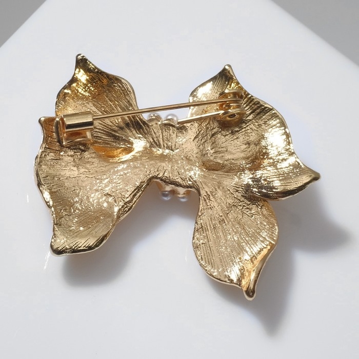 Брошь «Бантик» с жемчужинками, цвет белый в золоте