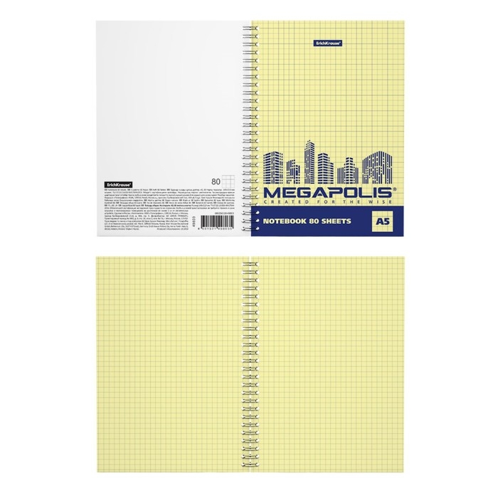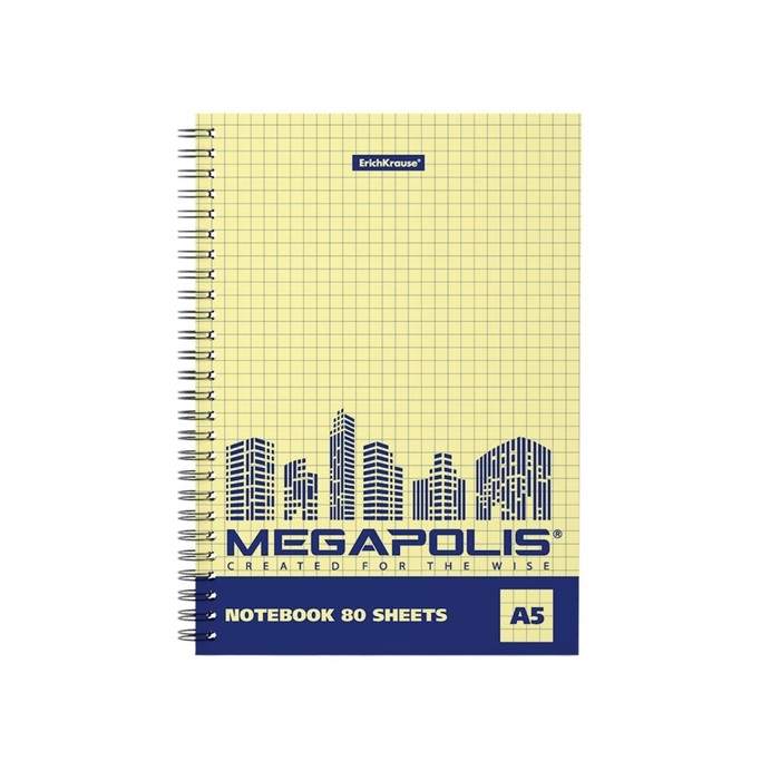 Тетрадь на спирали, 80 листов в клетку, ErichKrause Megapolis Yellow Concept, обложка мелованный картон, жёлтый внутренний блок