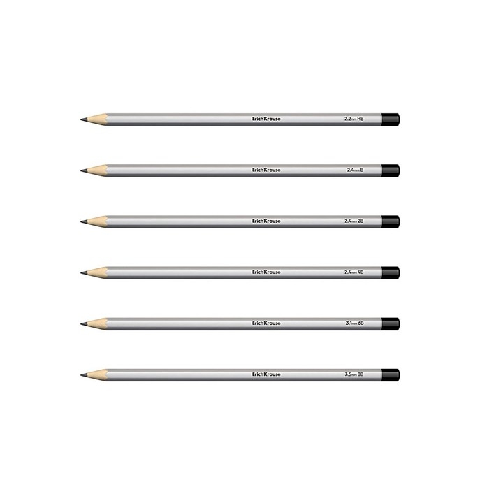Набор карандашей чернографитных различной твердости 6 штук, ErichKrause, грифель d=2.2 мм, шестигранные, ударопрочные, серебро, в коробке