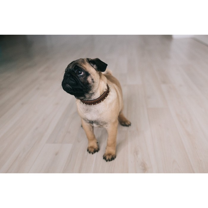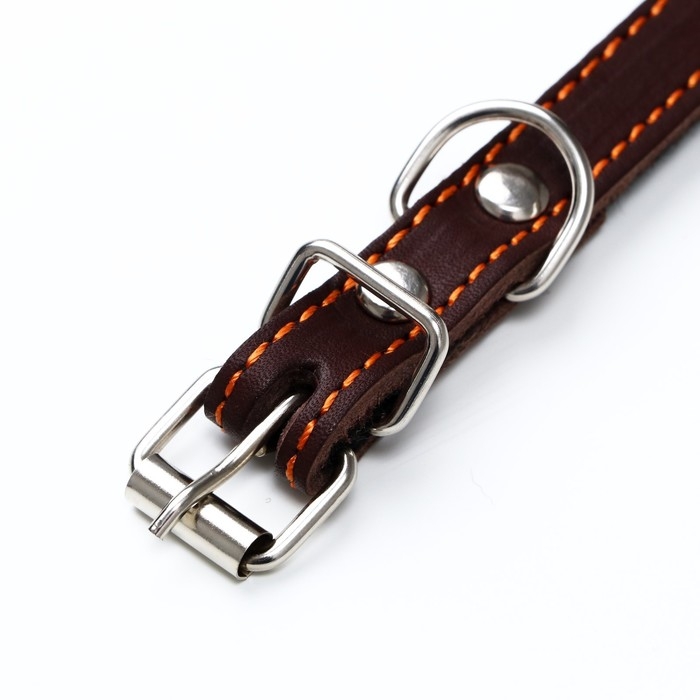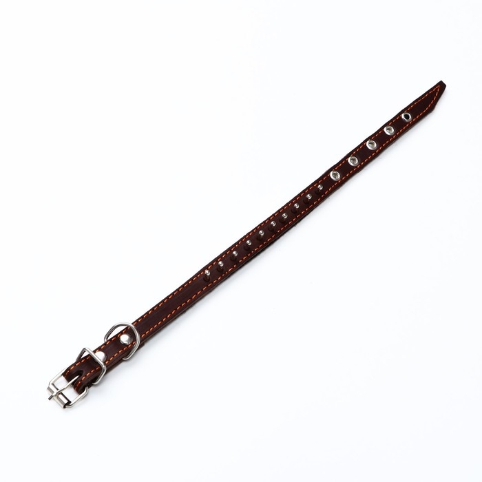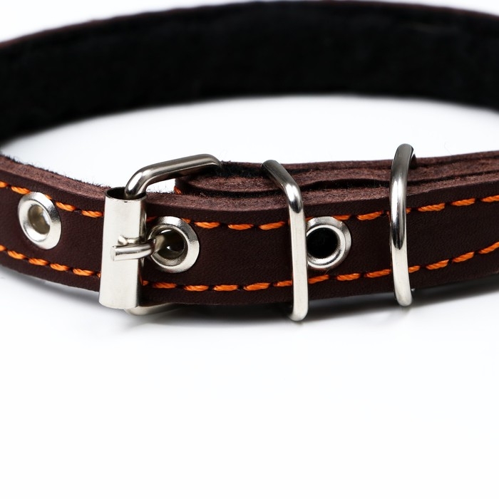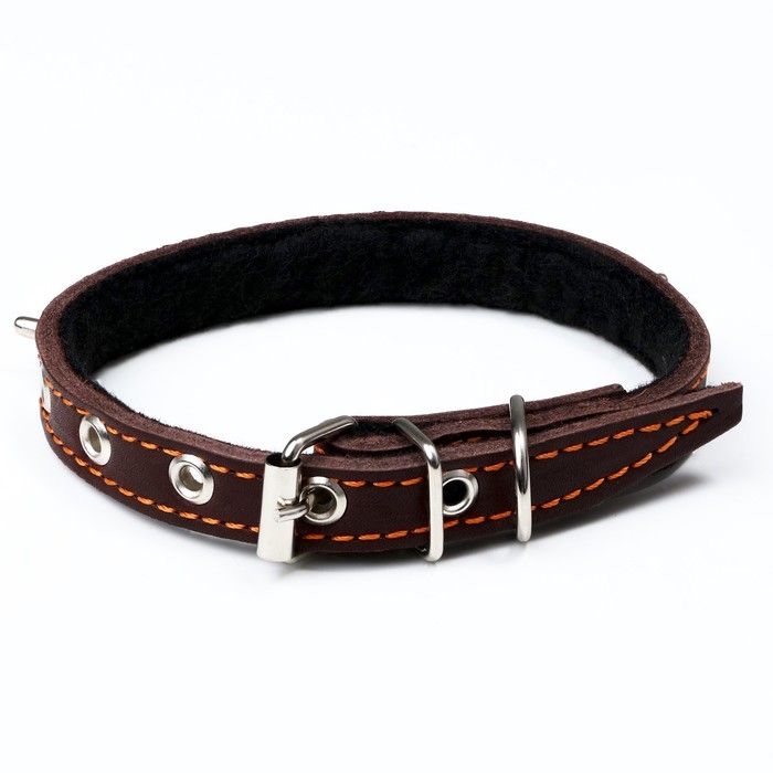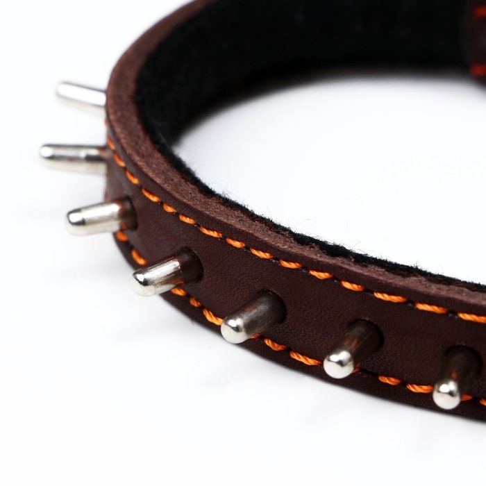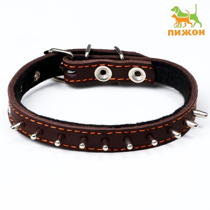 Ошейник кожаный на синтепоне, "Ёж" 36 х 1.5 см, ОШ 20-30 см, коричневый