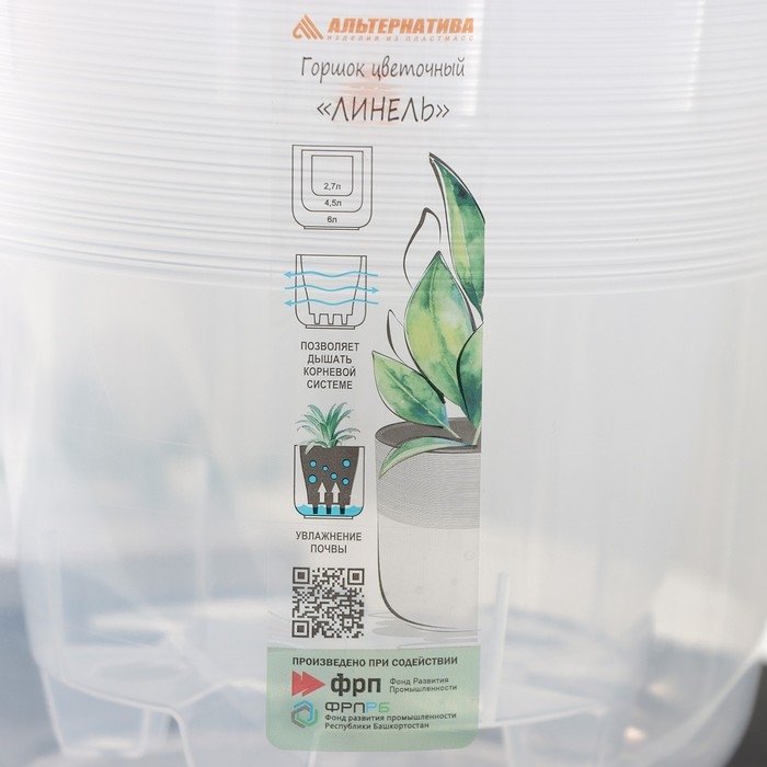Кашпо для цветов со вставкой «Линель», 2,7 л, d=16 см, h=16 см, прозрачный