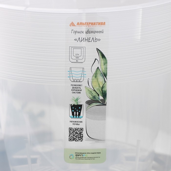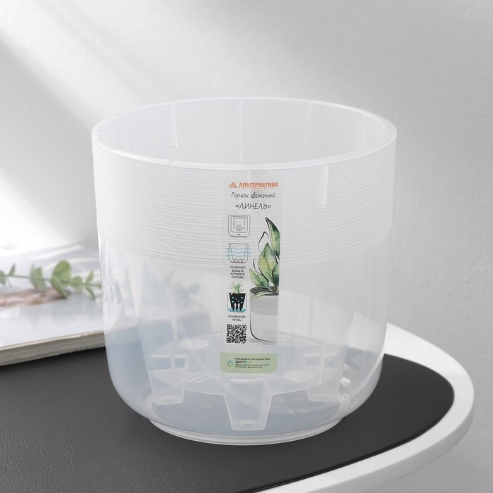 Кашпо для цветов со вставкой «Линель», 4,5 л, d=19 см, h=19 см, прозрачный