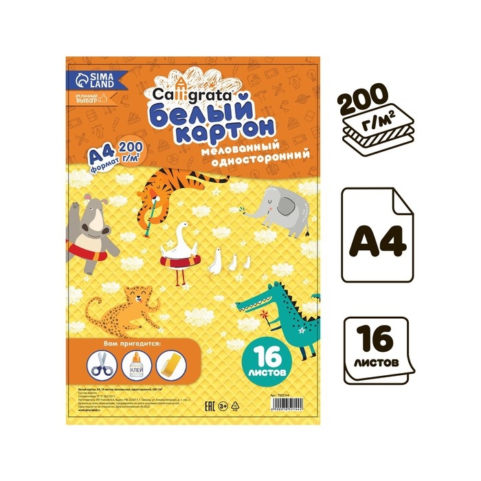 Картон белый А4, 16 листов Calligrata, двойное мелование, 200 г/м2