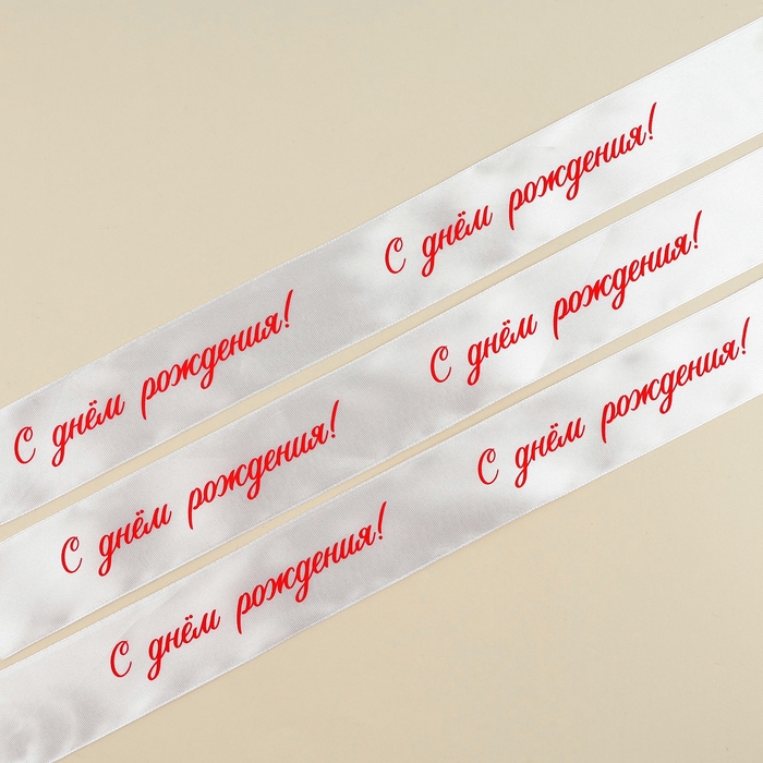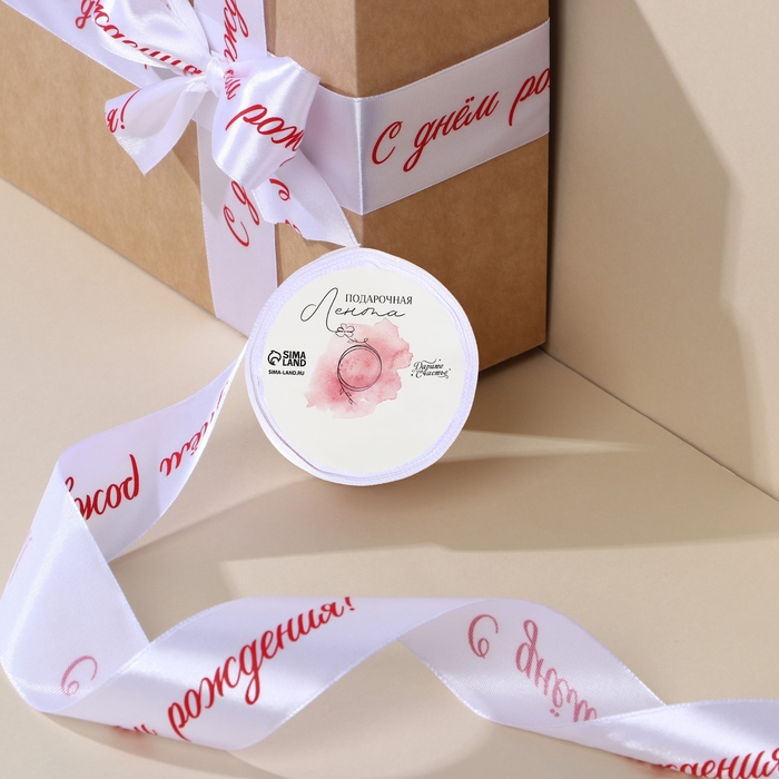 Лента атласная, подарочная упаковка, «С днем рождения!», белая, 4 см х 5 метров