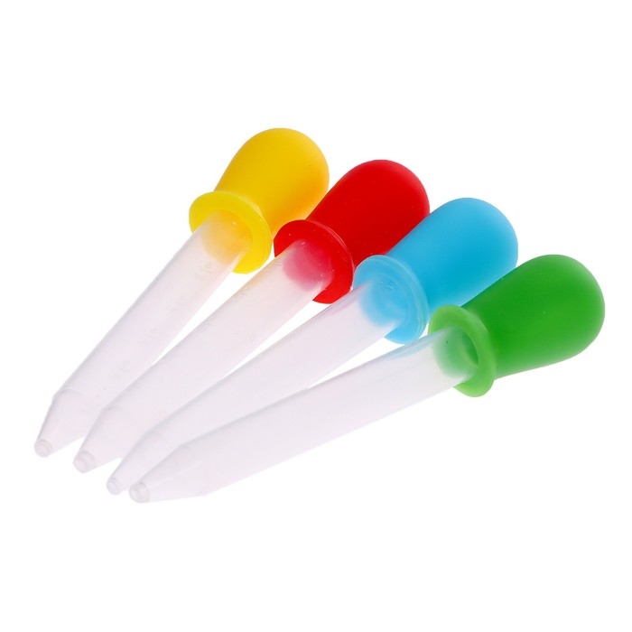 - Объясните ребёнку, как пользоваться пипетками: предоставьте ему возможность самостоятельно потренировать навык, переливая воду из одной ёмкости в другую.