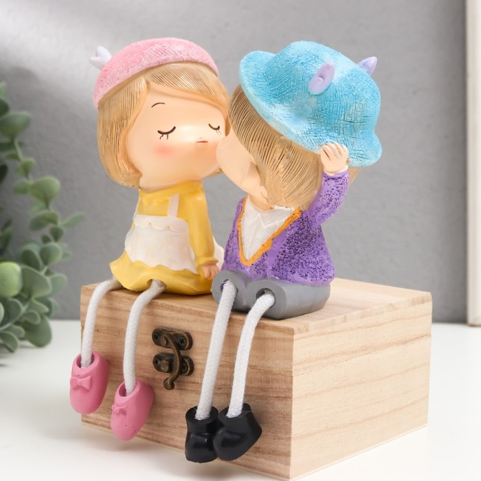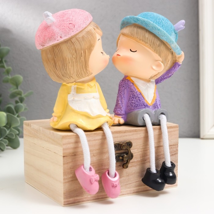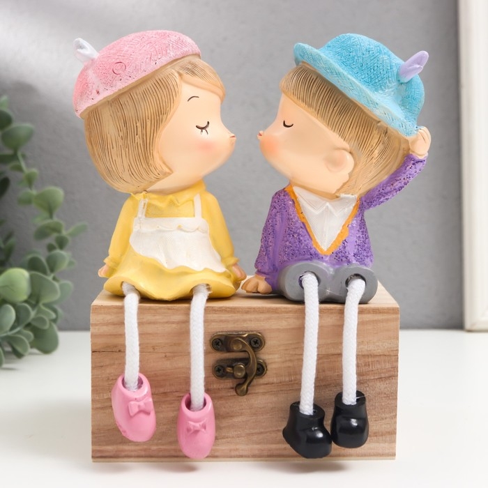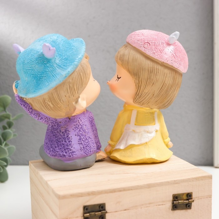 Сувенир полистоун "Мальчик и девочка в шапочках с рожками" дл. ножки, набор 2 шт 6х7х17 см
