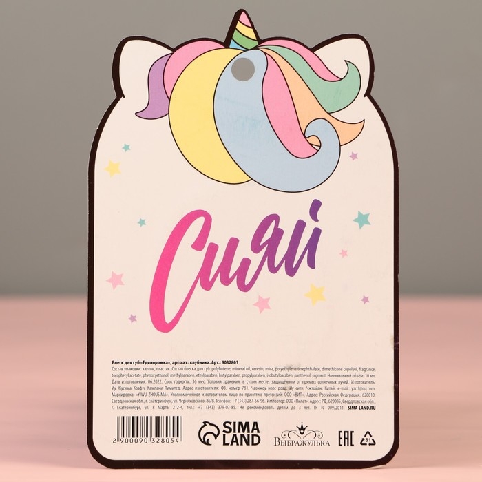 Блеск для губ «Единорожка», аромат клубники