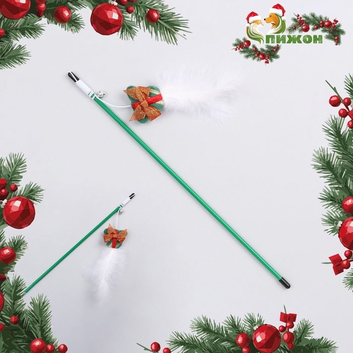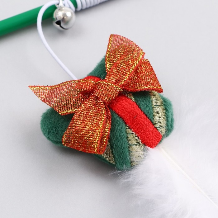 Новый год. Дразнилка-удочка для кошек с бубенчиком "Подарок", 40 см