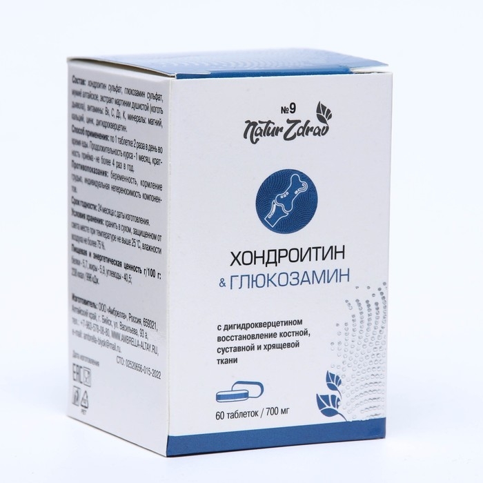 Концентрат №9 Хондроитин + Глюкозамин с дигидрокверцетином, 60 капсул по 700 мг