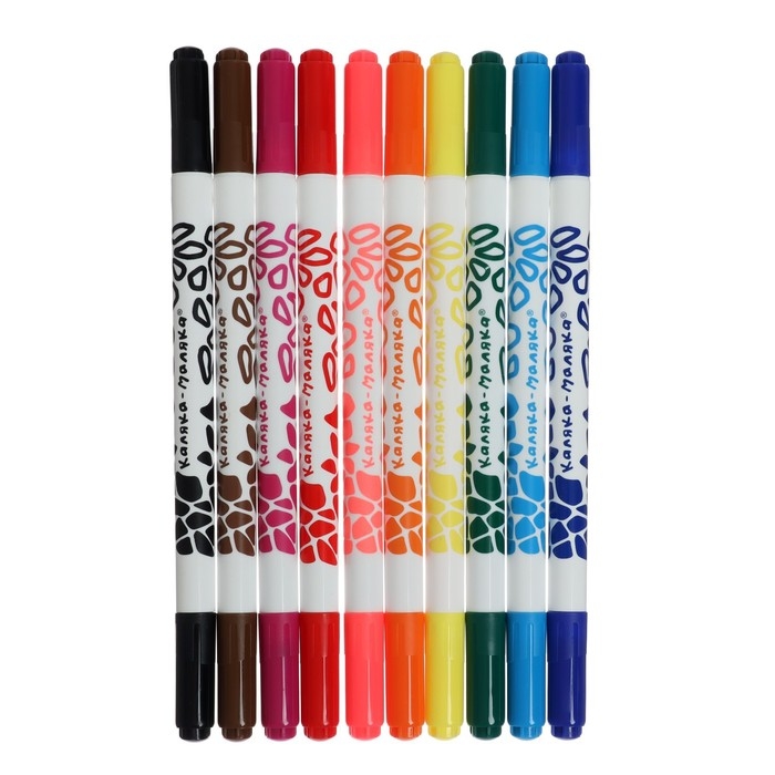 Фломастеры 10 цветов "Каляка-Маляка", двухсторонние, легкосмываемые, круглый корпус, в блистере