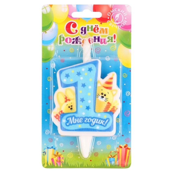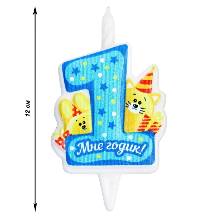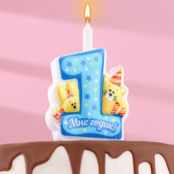 Свеча в торт "Мне годик!" с котом и кроликом, 9,7 см, 12 мин, 40 г