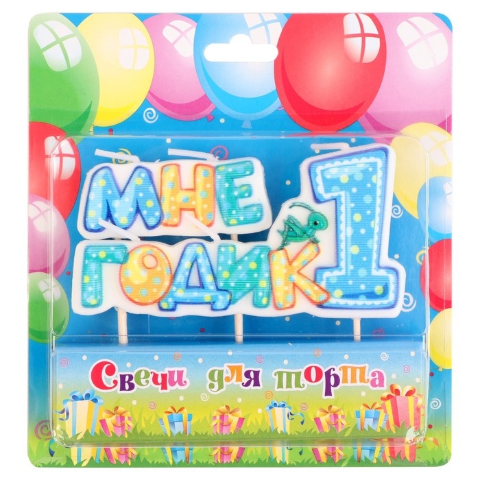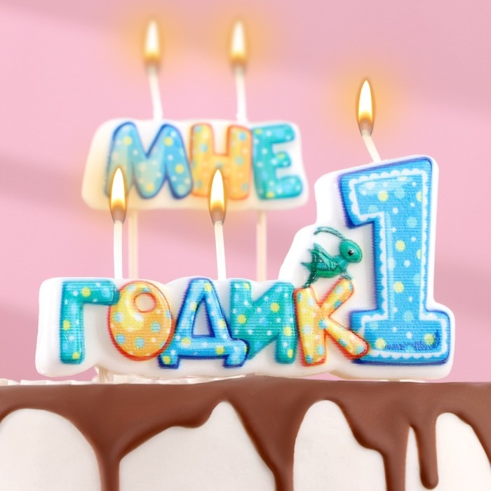 Свеча в торт на шпажке для мальчиков "Мне годик", 7,7 см, 12 мин, 65 г