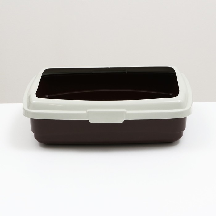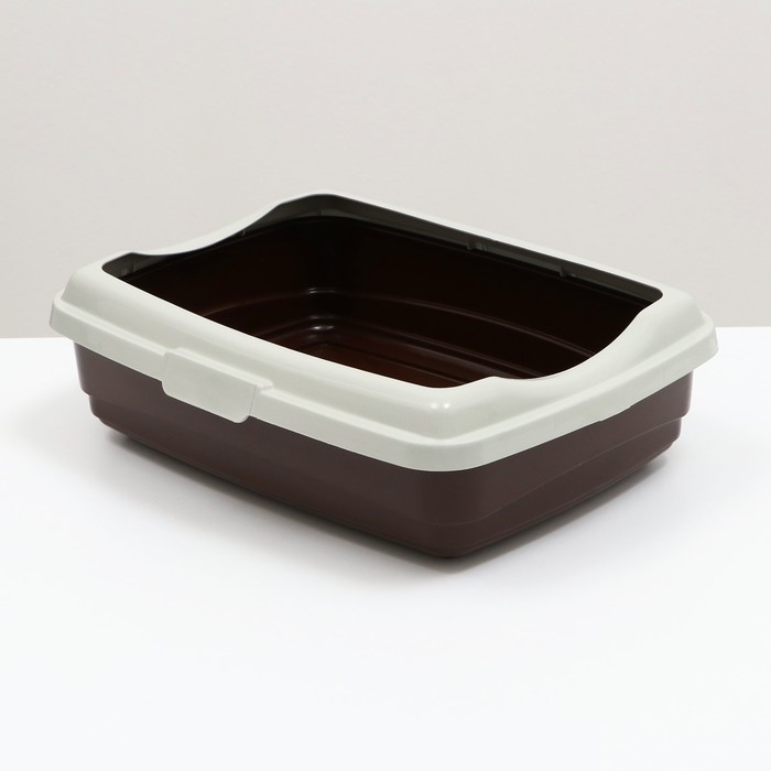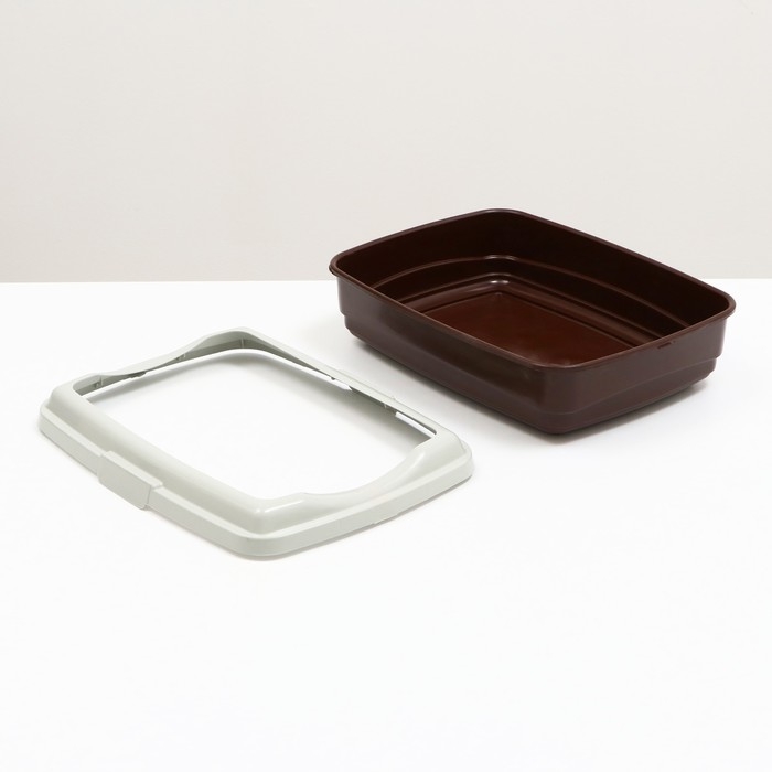 Пластиковый лоток для кошек с бортами удобен в использовании. Борт крепится защелками.