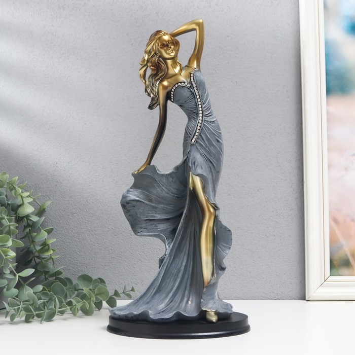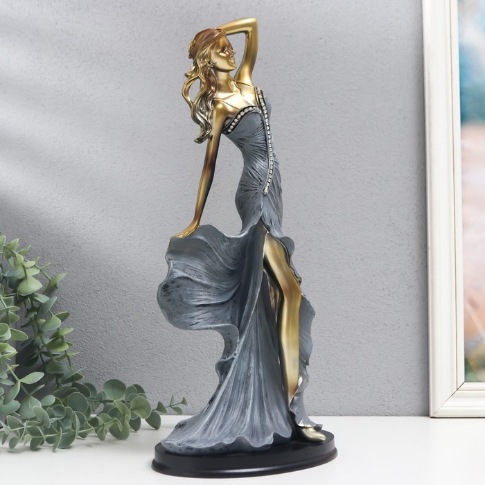 Сувенир полистоун "Девушка в синем вечернем платье со стразами" 11,8х16,5х37 см