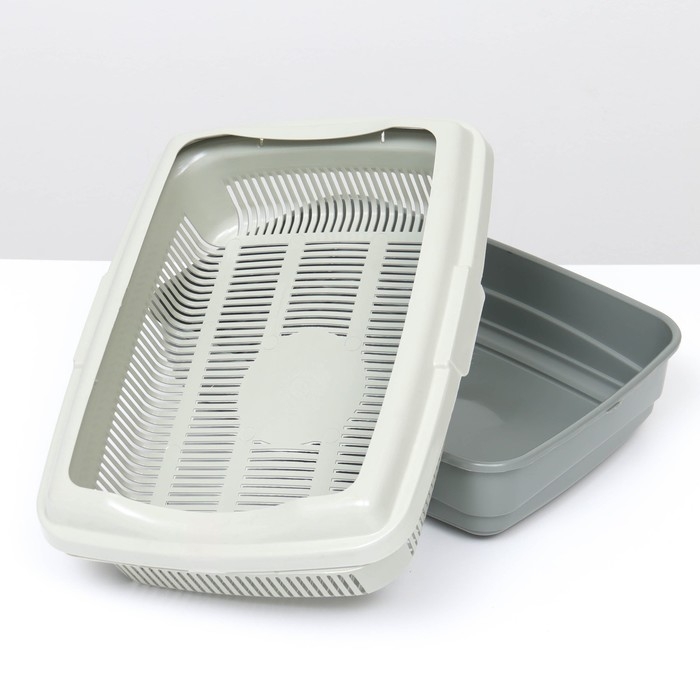 Лоток большой с сеткой и бортиком Atlantis "Стандарт", 43 х 33 х 12,5 см, серый