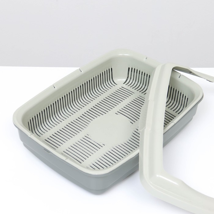 Лоток для кошек изготовлен из пластика, отвечает требованиям гигиены и безопасности, не имеет запахов, легко моется.