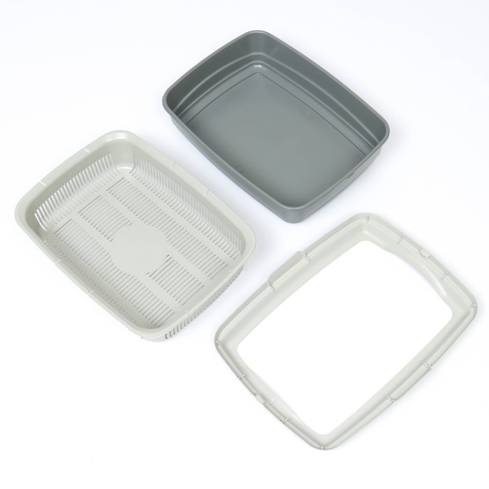 Пластиковый лоток для кошек с бортами удобен в использовании. Борт крепится защелками.