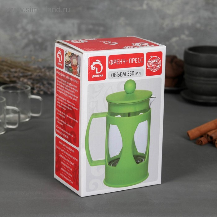 Чайник заварочный френч - пресс Доляна «Классика», 350 мл, стекло, цвет красный