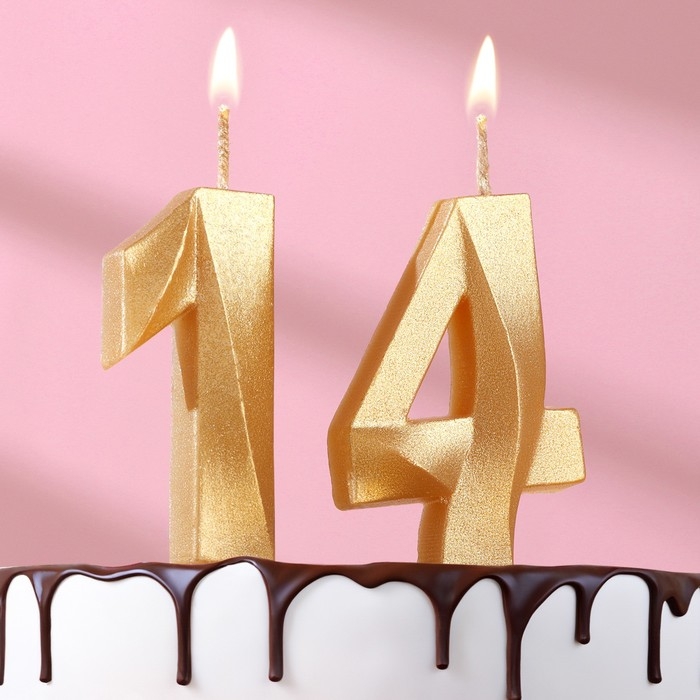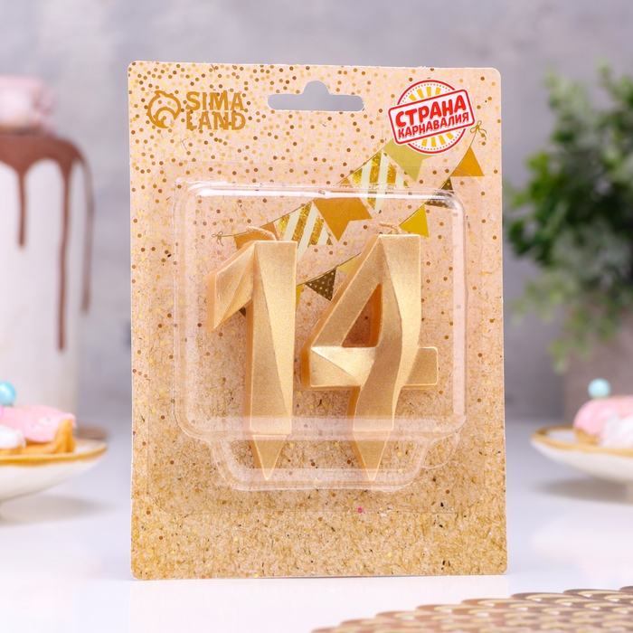 Свеча в торт юбилейная "Грань" (набор 2 в 1), цифра 14, цифра 41, золотой металлик, 6,5 см