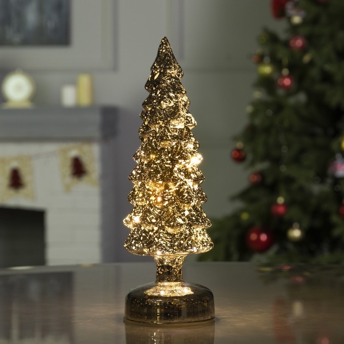 Светодиодная фигура «Серебристая ёлка» 9 × 29 × 9 см, стекло, батарейки АААх3 (не в комплекте), свечение тёплое белое