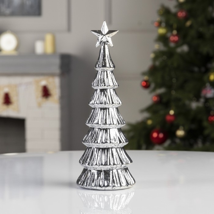Светодиодная фигура «Серебристая ёлка» 10 × 26 × 10 см, стекло, батарейки АААх3 (не в комплекте), свечение тёплое белое